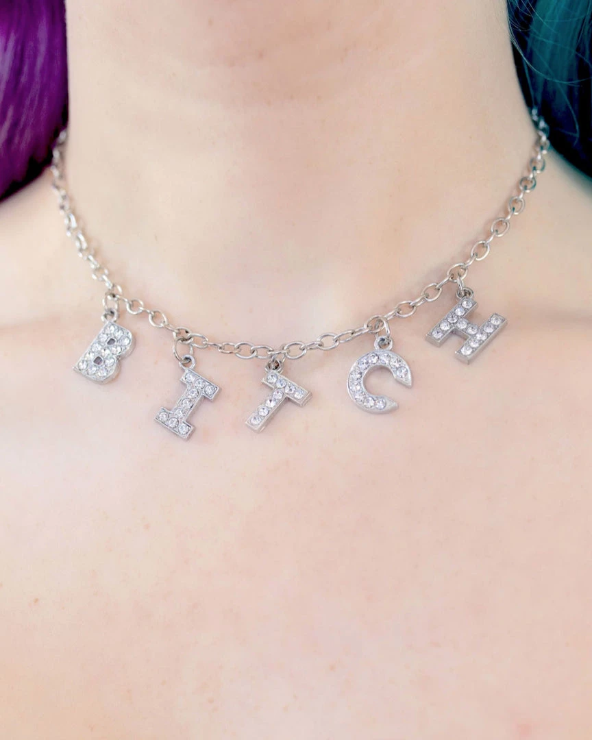 AE B-I-T-C-H Rhinestone Necklace Accessories