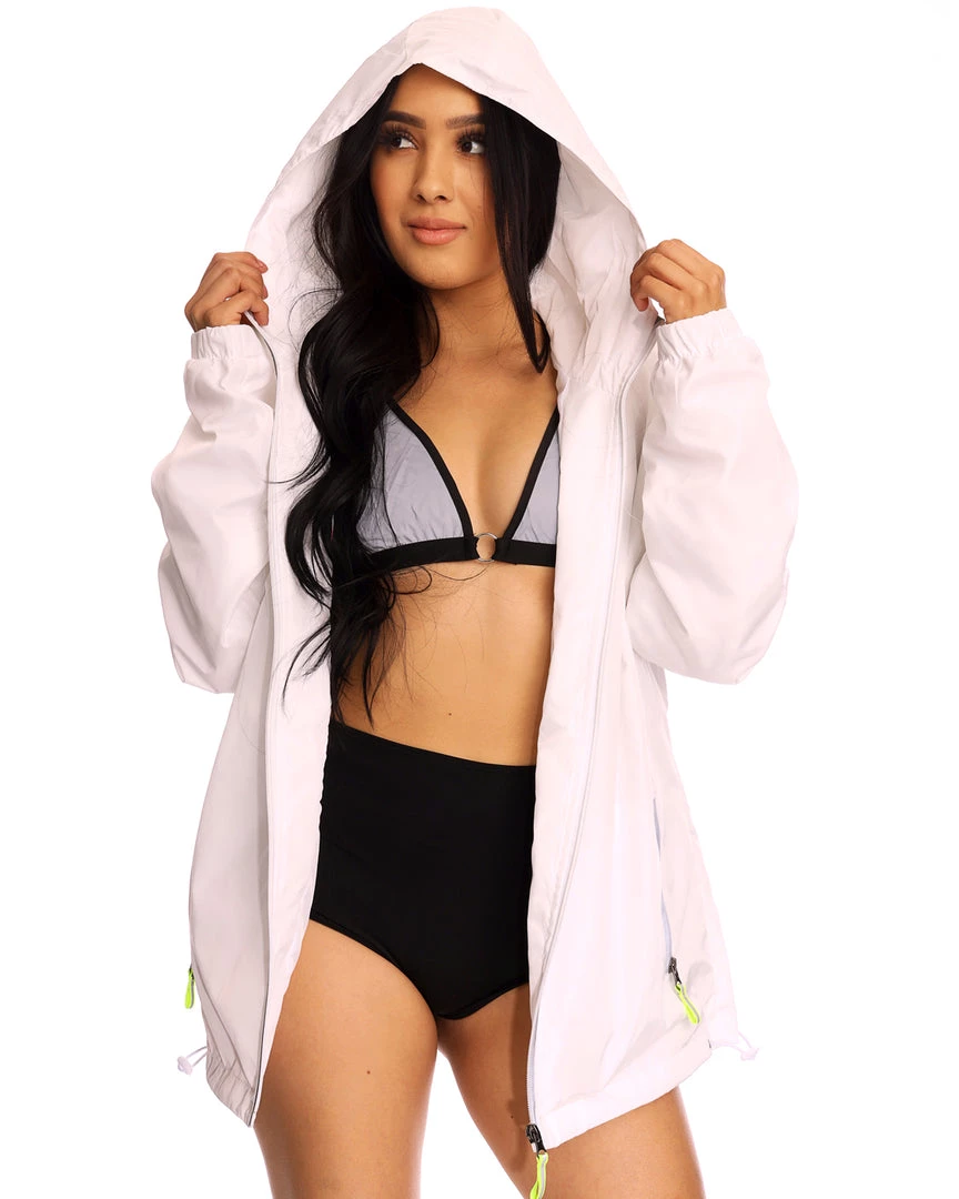 GET FLASHY in this light up windbreaker! Features reflective lining details, multi-colored lights and FOUR different light modes. Uses 3 AA batteries (not included).