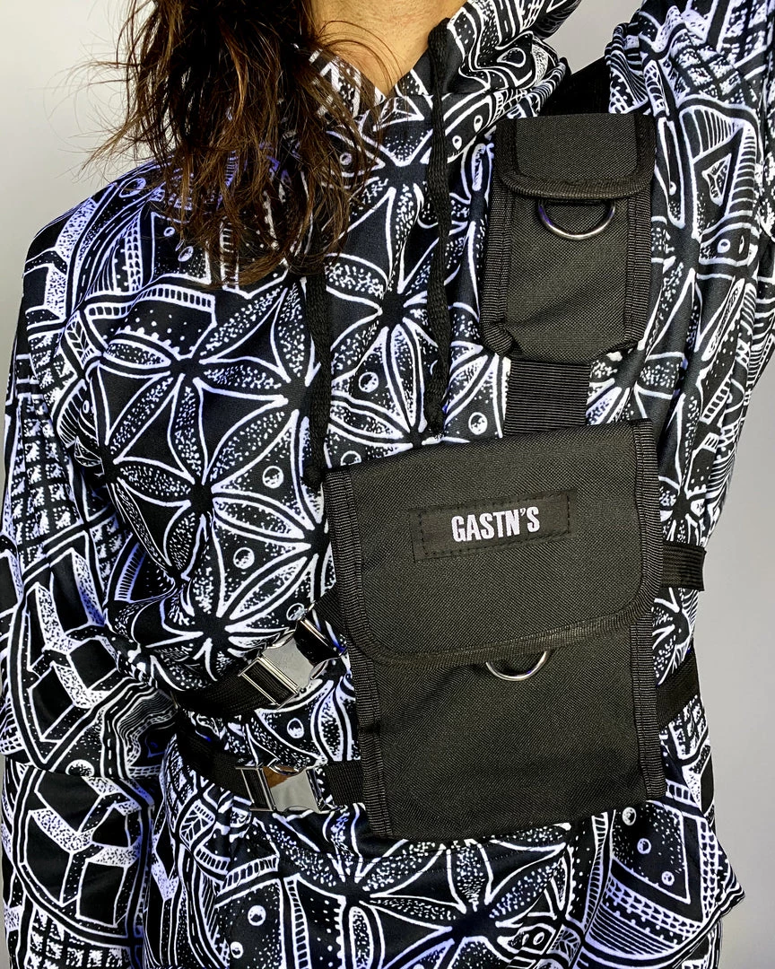 Keep yo shit hella secure in this bag! Features adjustable straps for an easy fit.