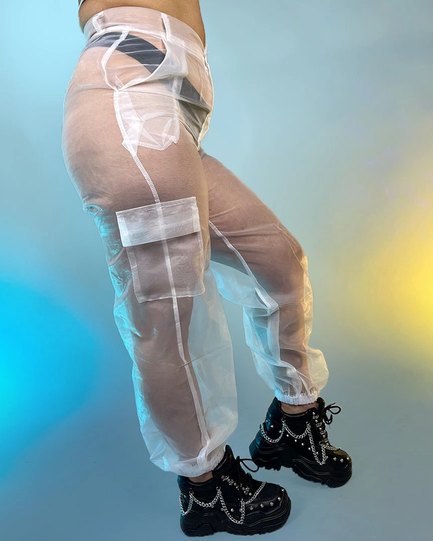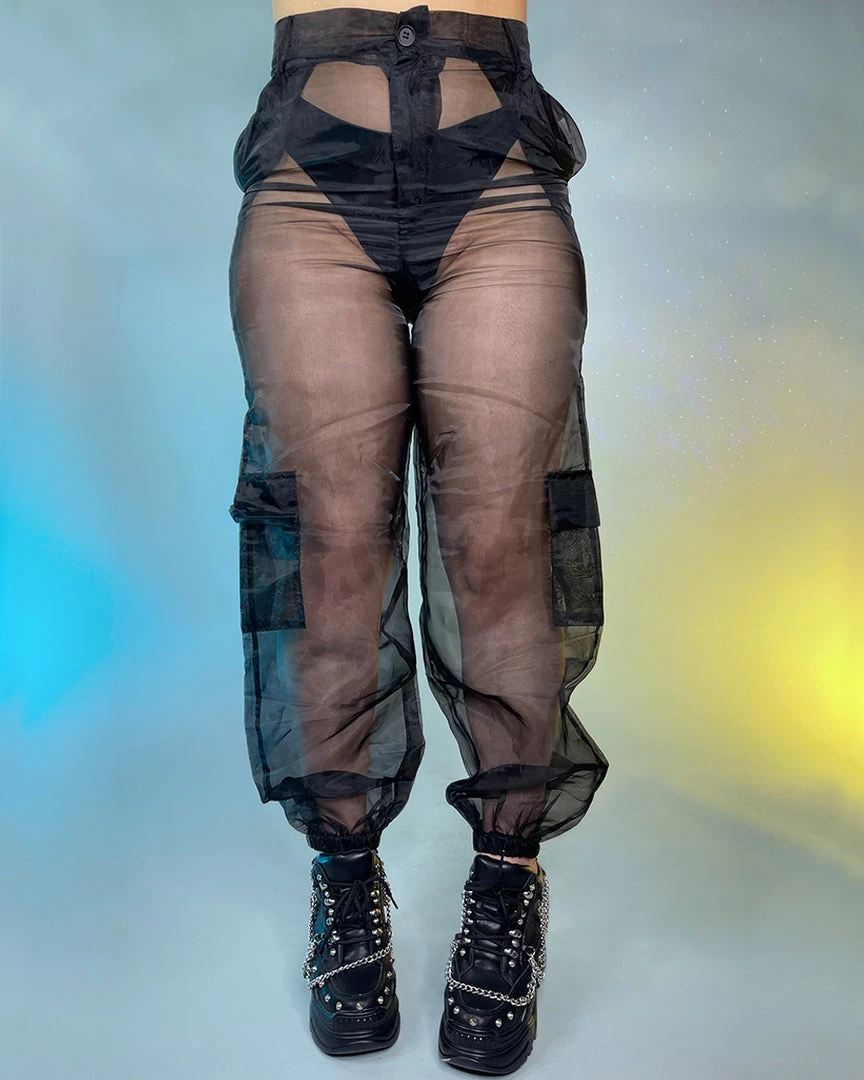 These see-through cargo pants are perfect for a little cover up on a hot day!