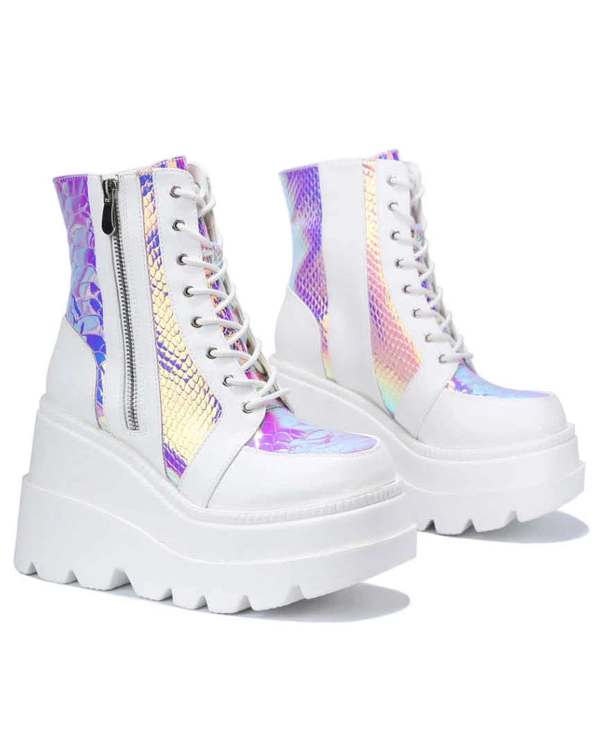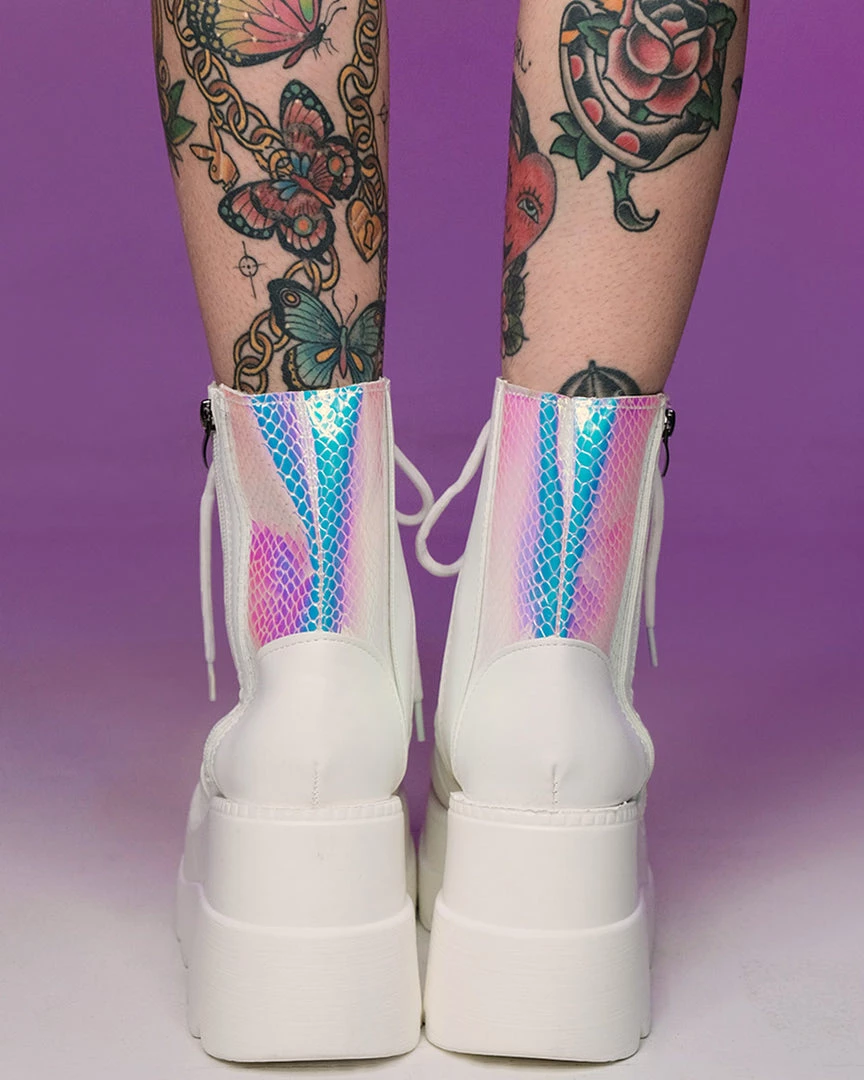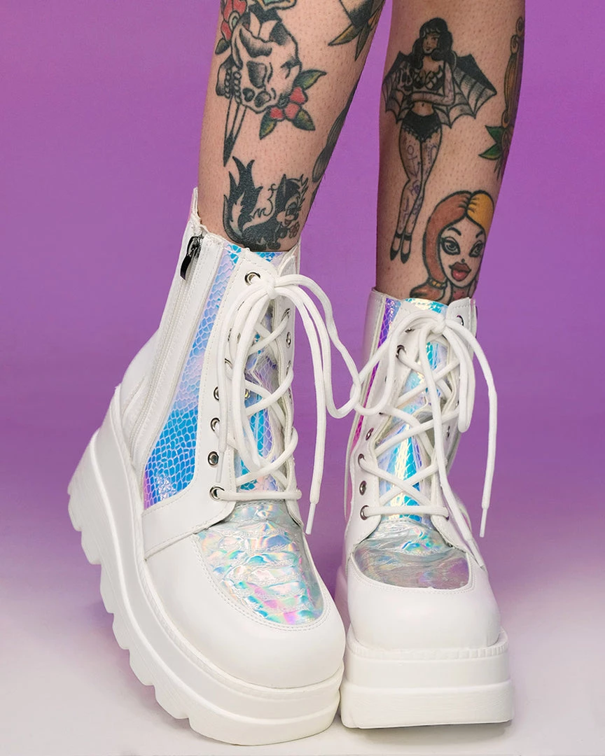 These BADD-A$$ platform boots featuring some amaaazing iridescent snake paneling detail will keep ya steezin all night (& day) long!