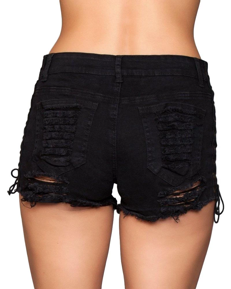 Be Wicked Womens Black Side Lace-Up Denim Shorts