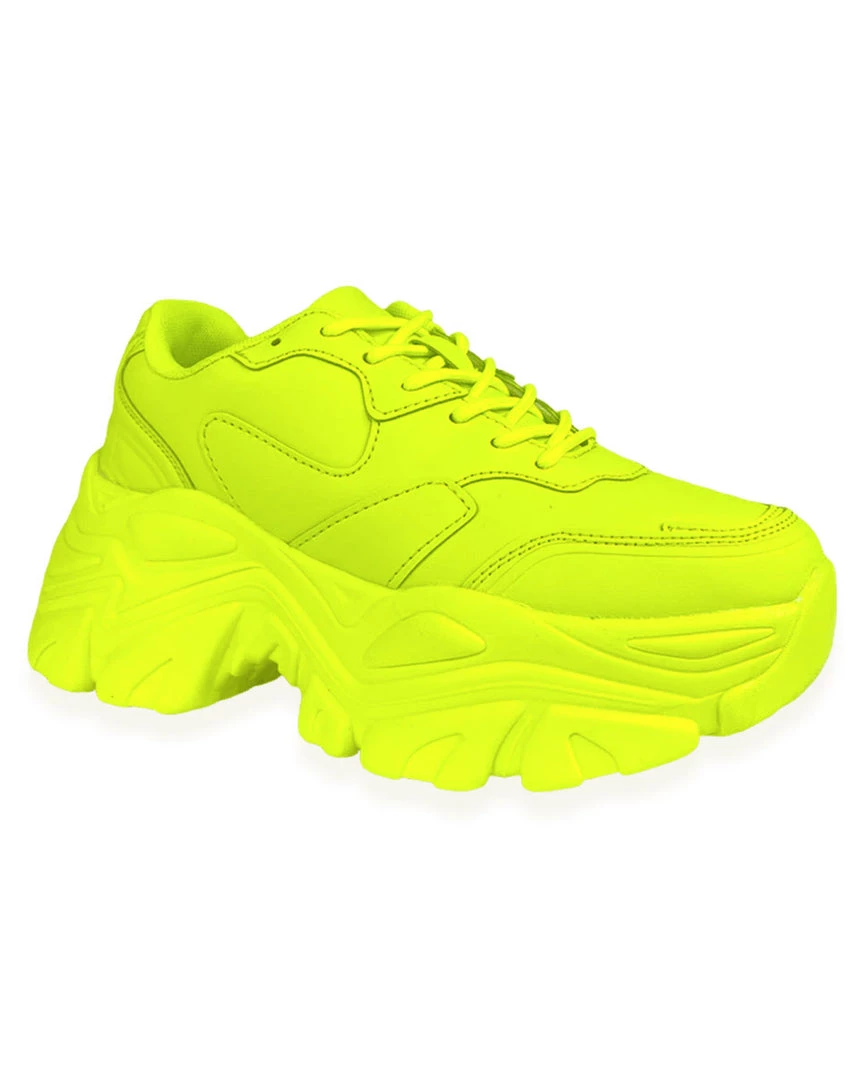 Berness Shoes Womens Neon Yellow Flexx Platform Sneakers