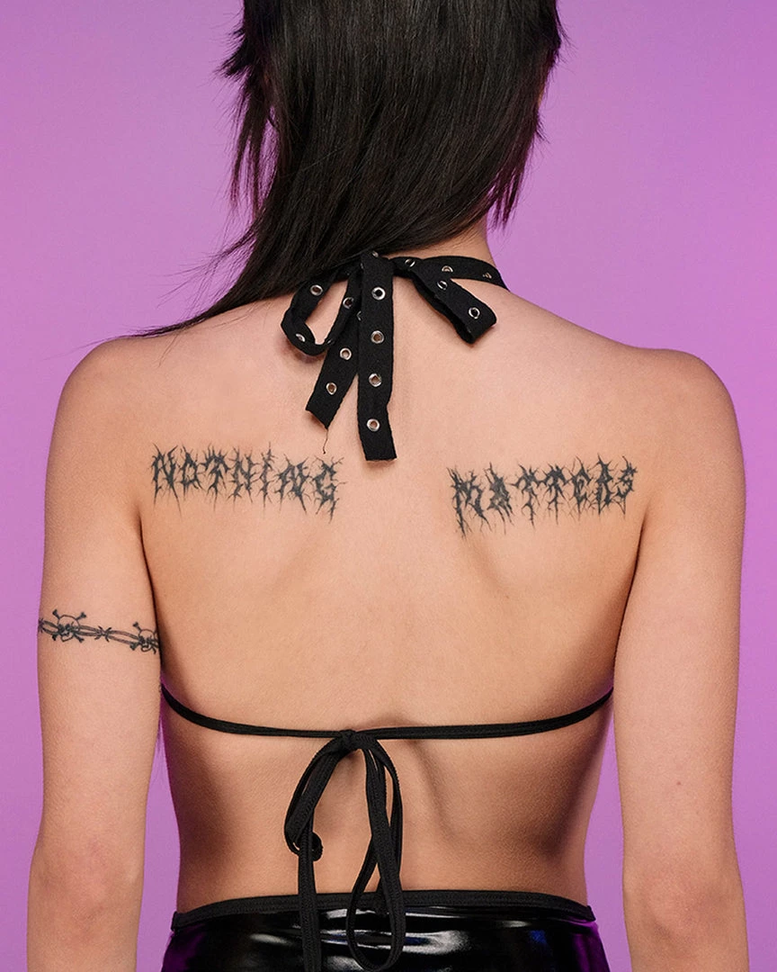 Bodyzone Sugar Baby Black Grommet And Lace Halter Top