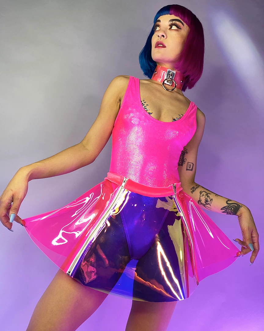 Cyber Prom Vinyl PVC Dual Zipper Skirt