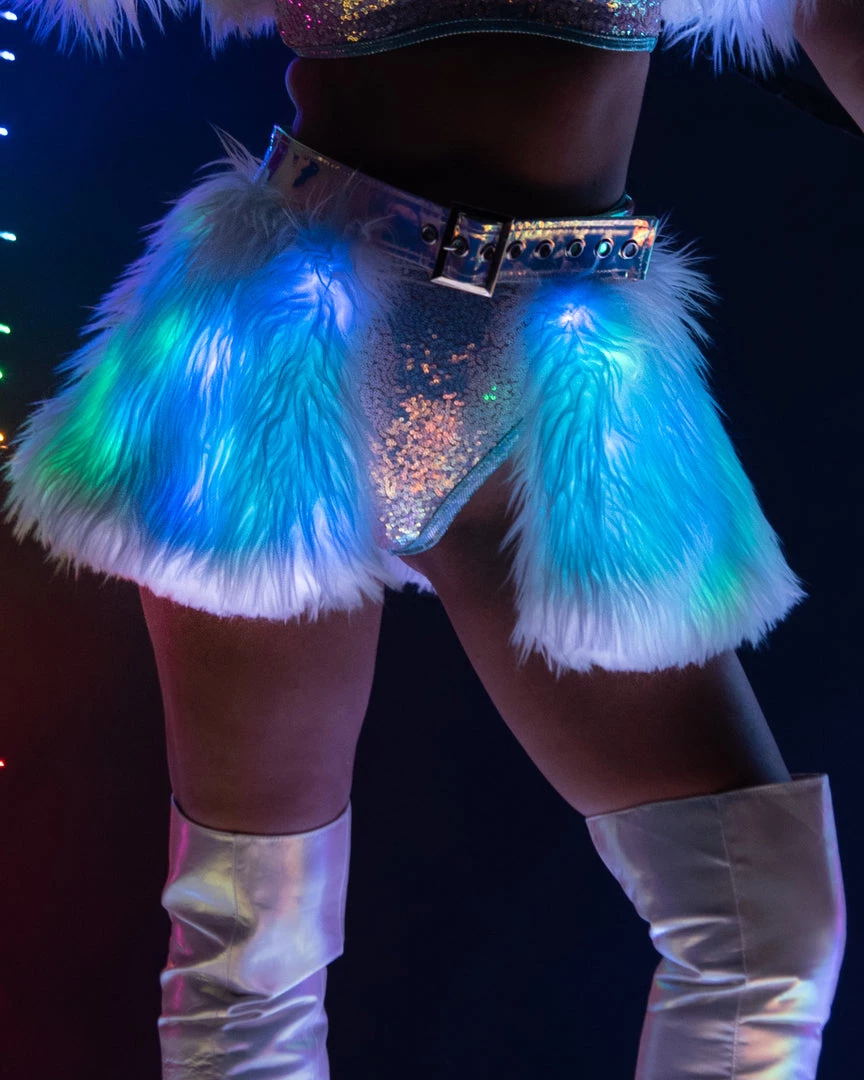 - White Fur/Blue & Green Lights Belted Light-Up Skirt