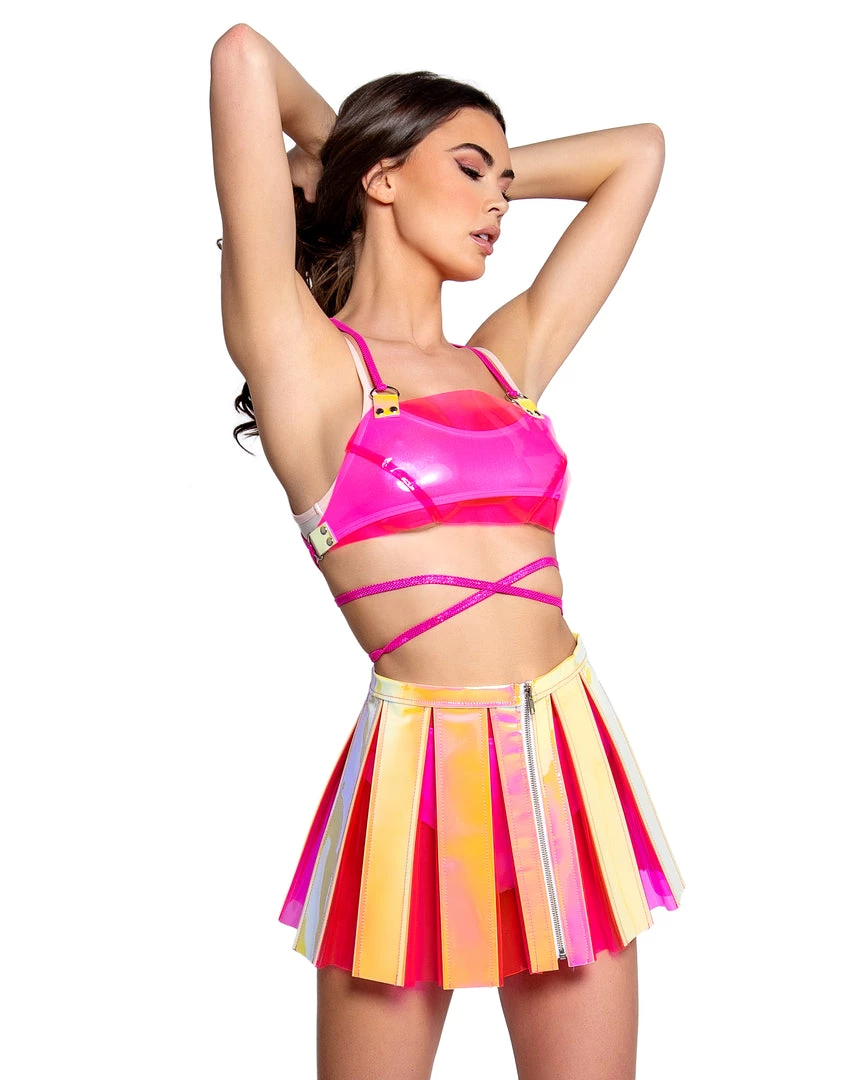- Pink Lemonade/Hot Pink Pleated Vinyl Skirt