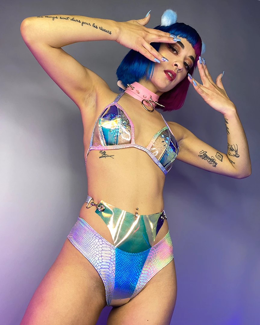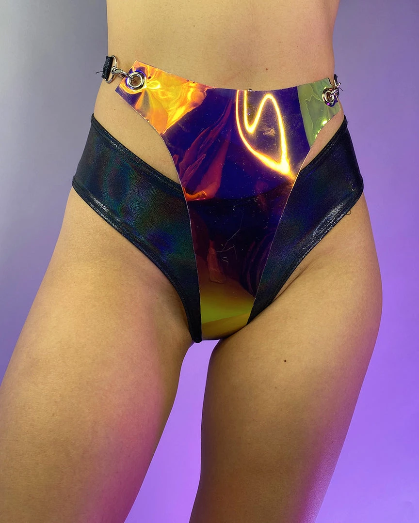 Cyber Prom Holographic Vinyl PVC Overlay Shorts. Includes the Vinyl PVC Overlay and Shorts Pictured Underneath