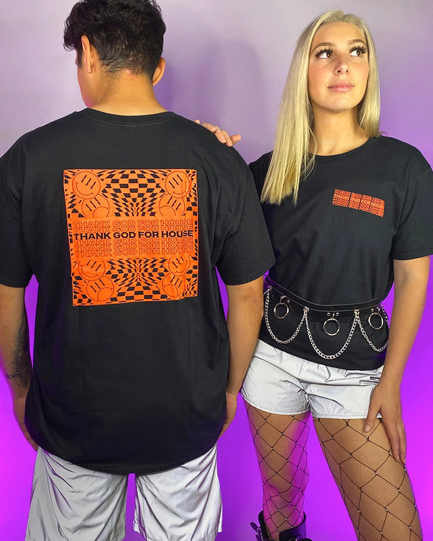 Thank God For House Rave Wonderland Black Tee
