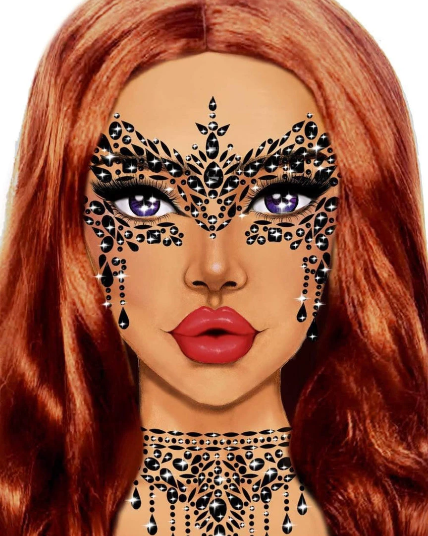 Leg Avenue Diamond Masquerade Adhesive Face Jewels Sticker – Black Accessories