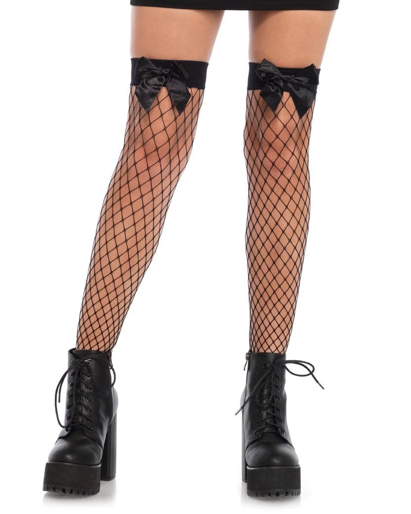 Leg Avenue Leg Wear Black Fence Net Bow Thigh Highs