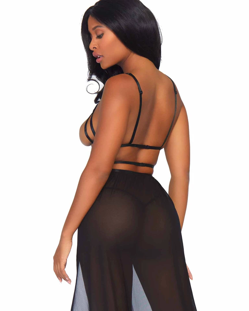 2 PC Cage strap open bodice maxi dress and matching g-string.