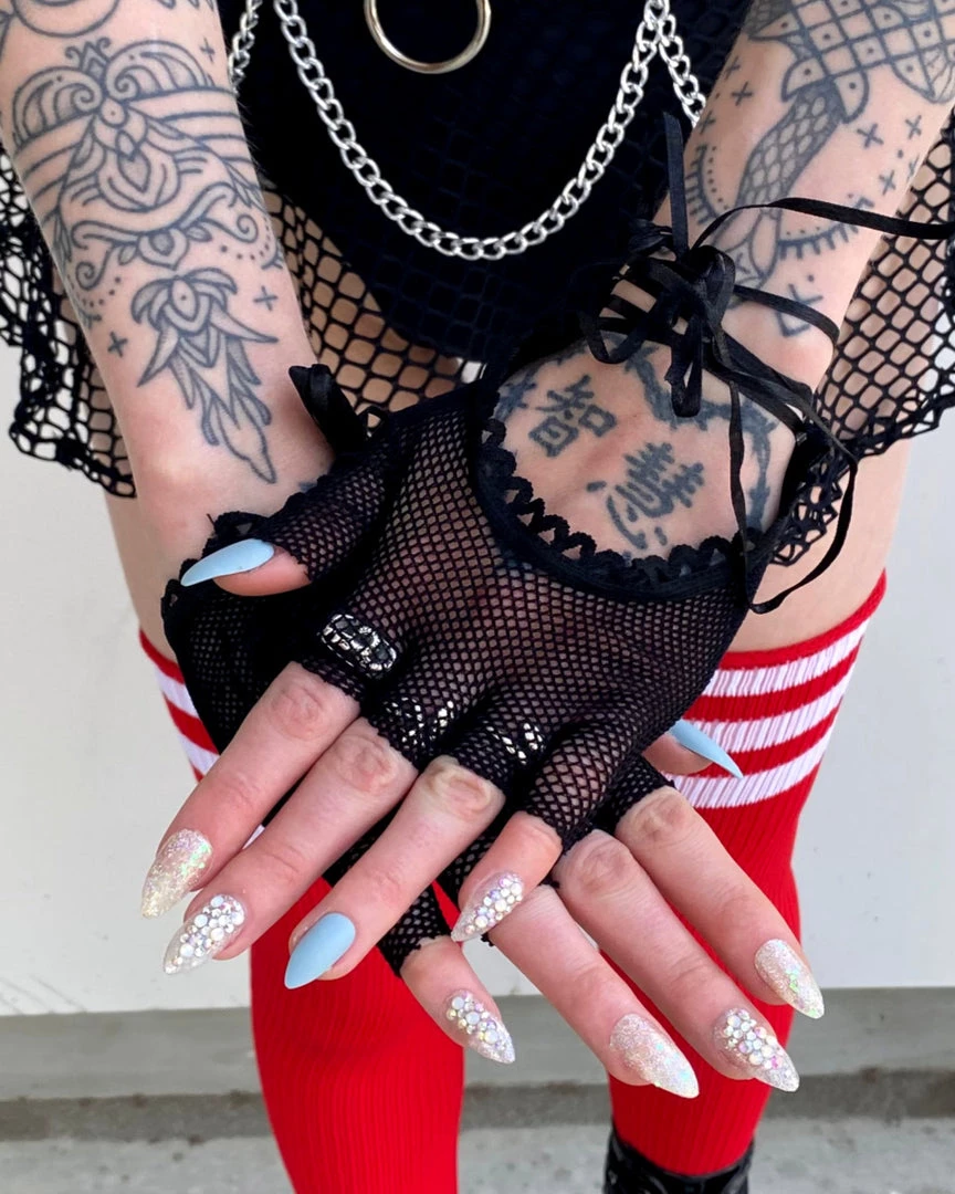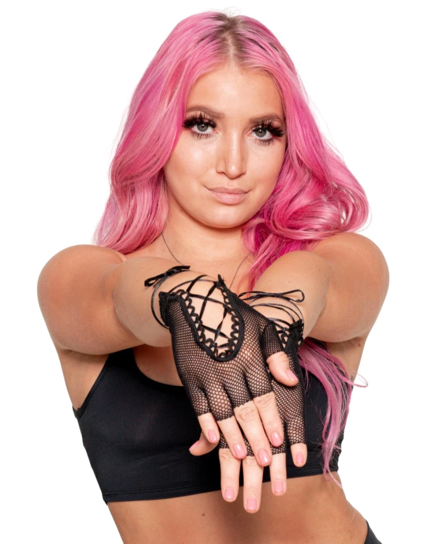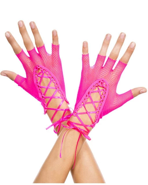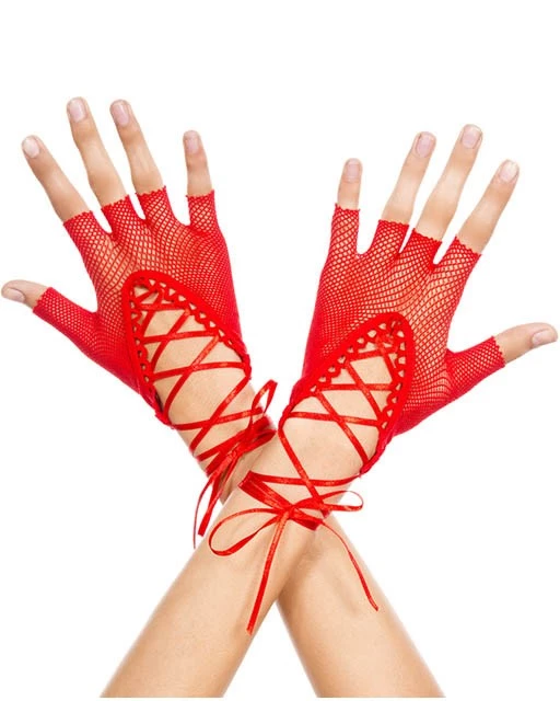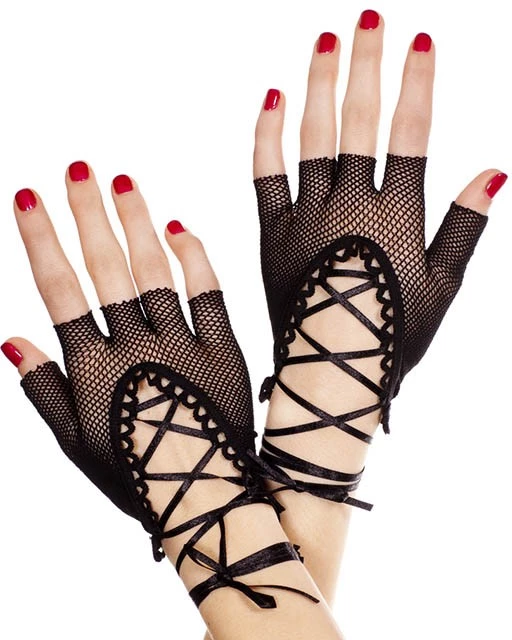 Music Legs Totally Bitchin’ Lace-Up Fishnet Gloves Womens