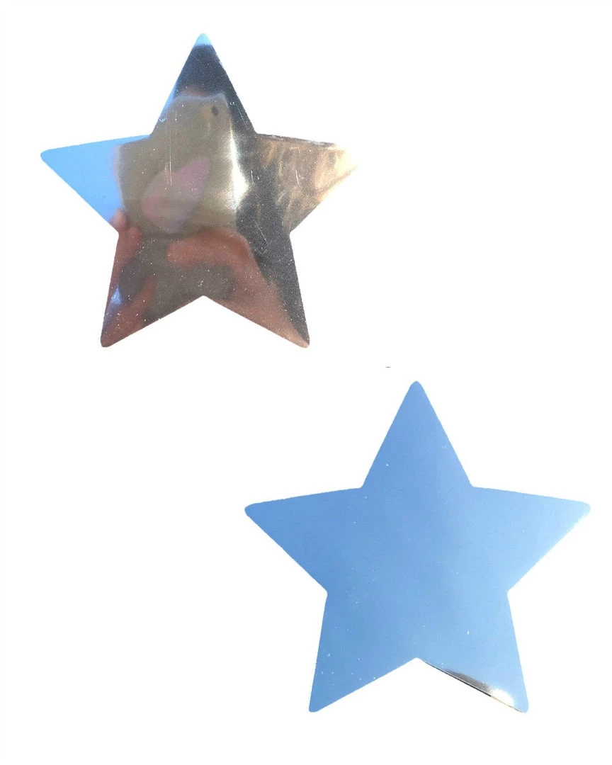 Each pack includes 2 mirror star pasties. Our pasties are great for raves, poolsides, festivals or fashion emergencies. Wear these pasties for evenings out, with daring dresses or to spice up those rave looks! Pastie change from a light shiny pink to a matte pink when touched.