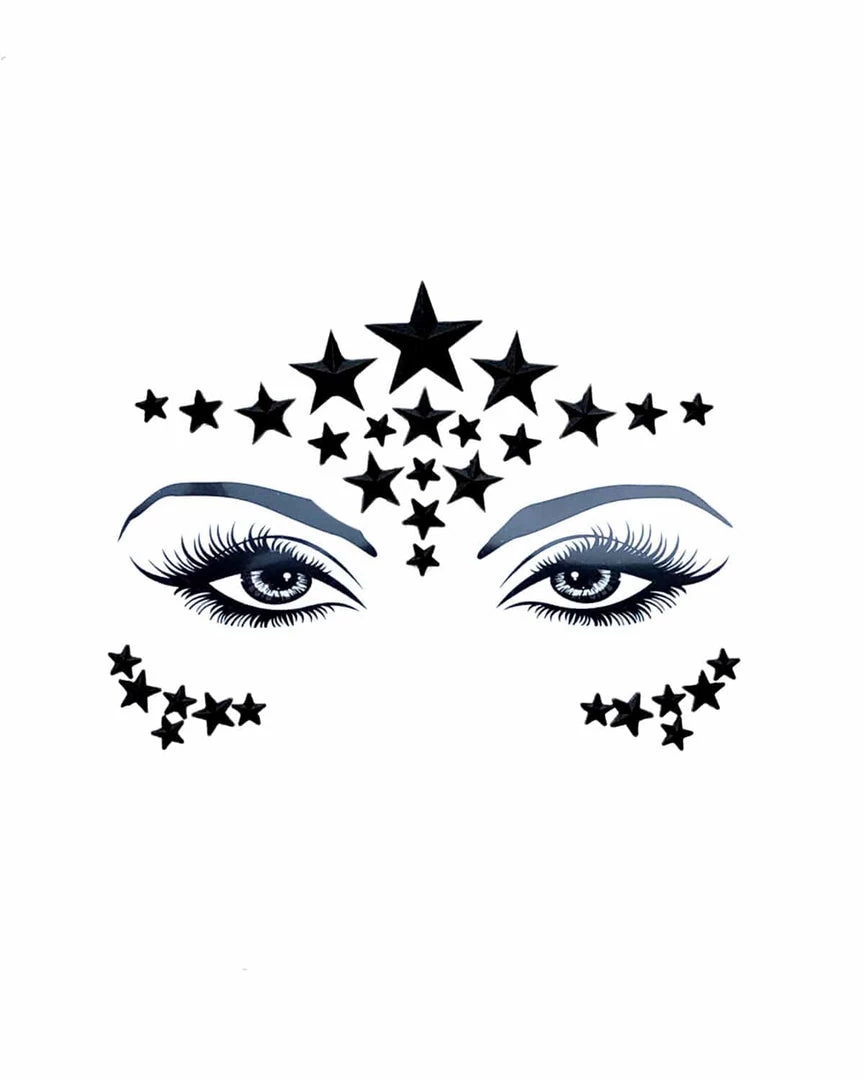 Prearranged rhinestone face jewels with adhesive. Super easy application! Just peel and stick onto desired area. Durable and holds all night while you dance the night away! Apply onto dry skin without makeup.