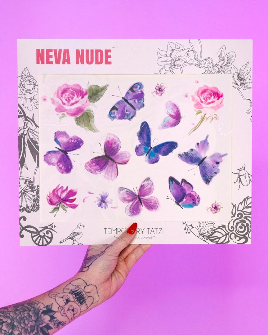 Neva Nude Purple Butterfly Kisses Giant Temporary Tattoo Pack