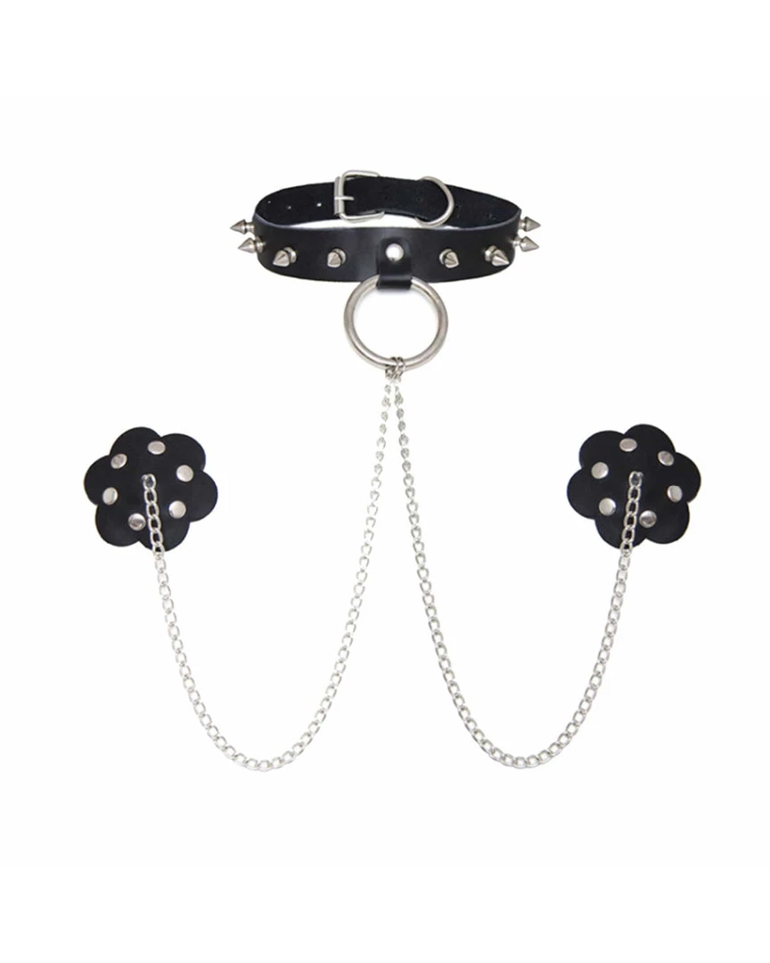 Neva Nude Slave 4 U Chain Neck Choker Leather Reusable Silicone Nipztix Accessories