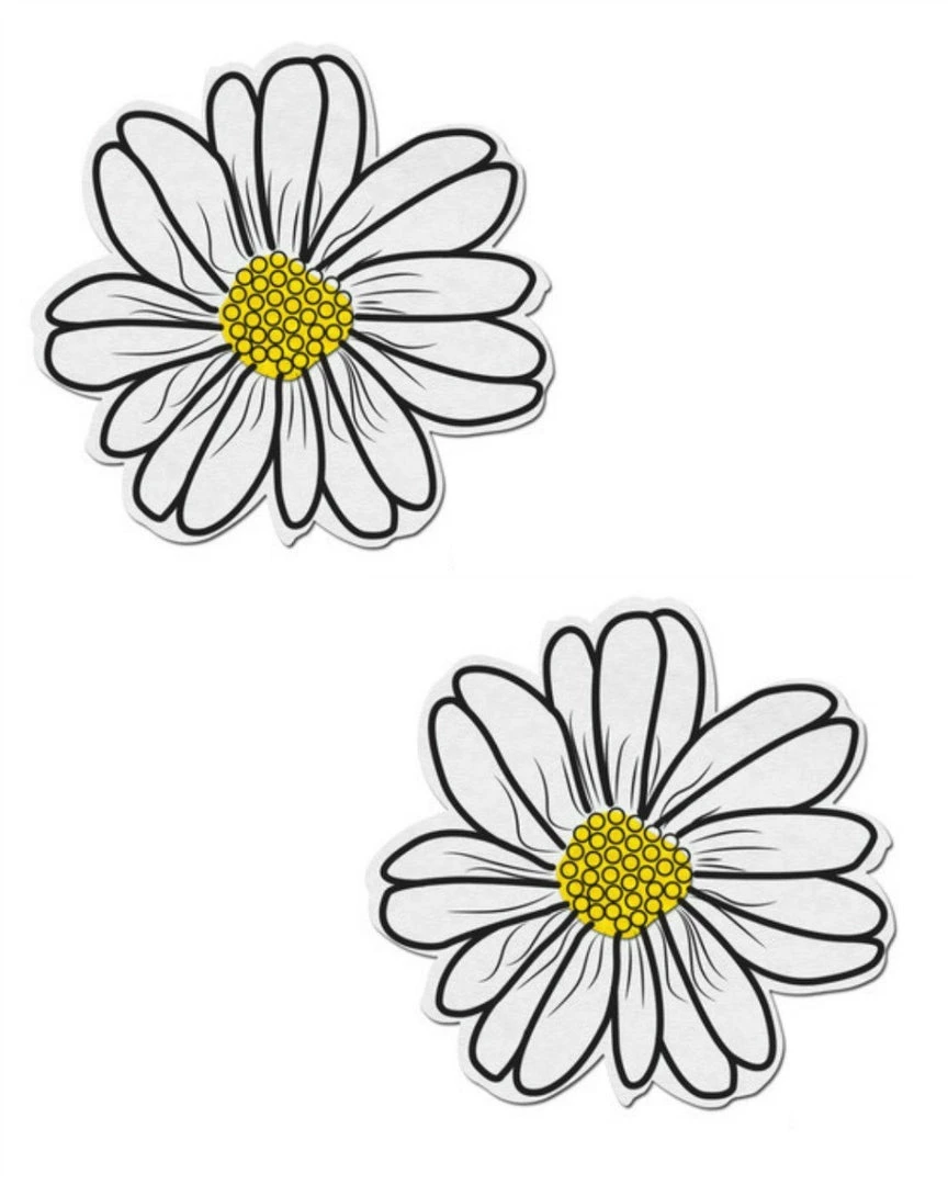 Pastease DAISY: WHITE AND YELLOW WITH BLACK FLOWER NIPPLE PASTIES