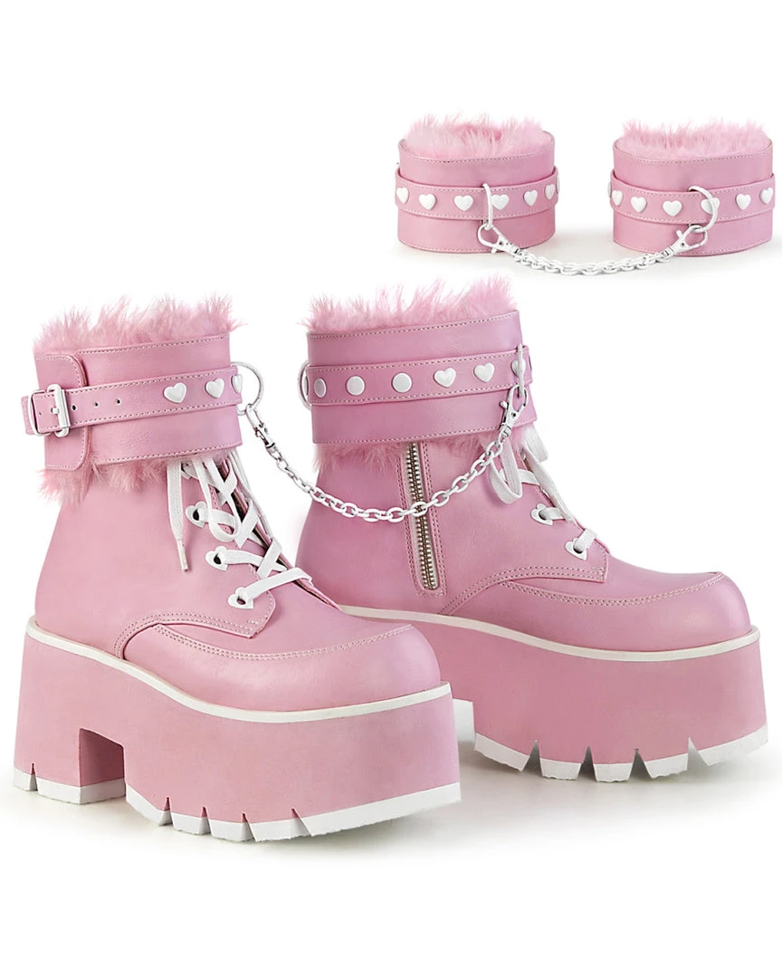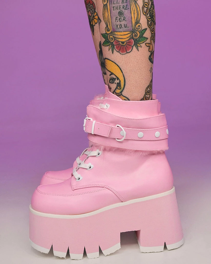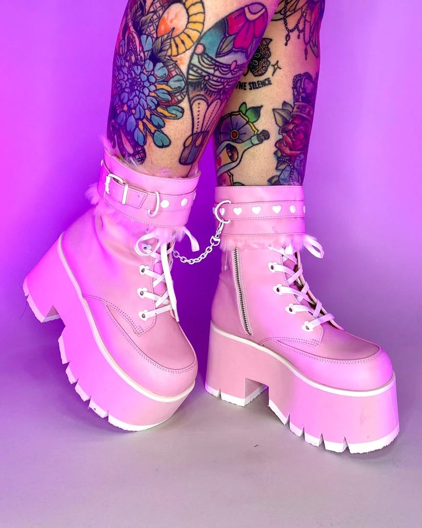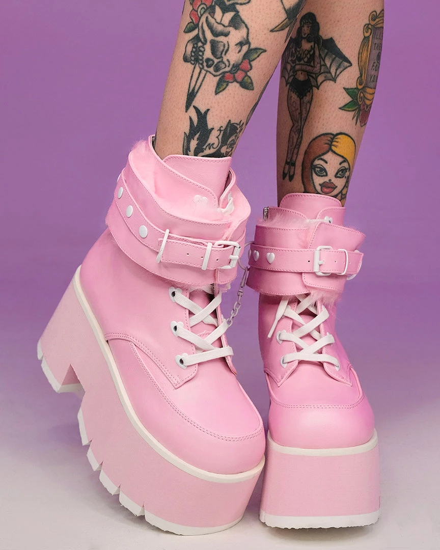 Pleasers Demonia Ashes Baby Pink Fuzzy Cuff Boots Shoes