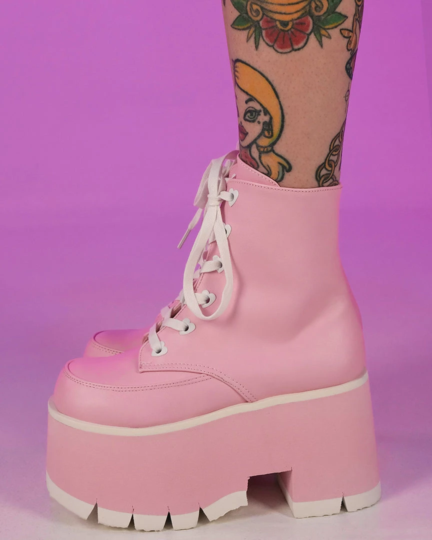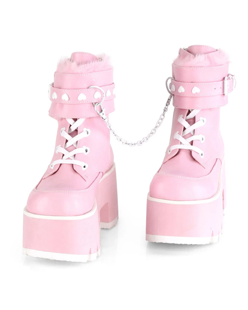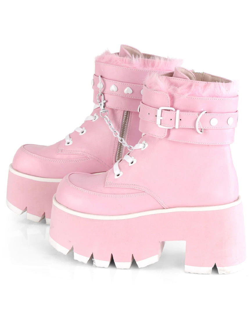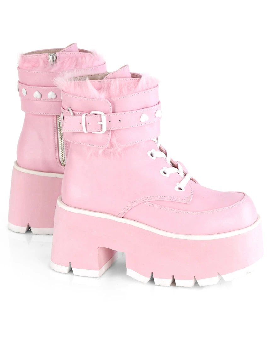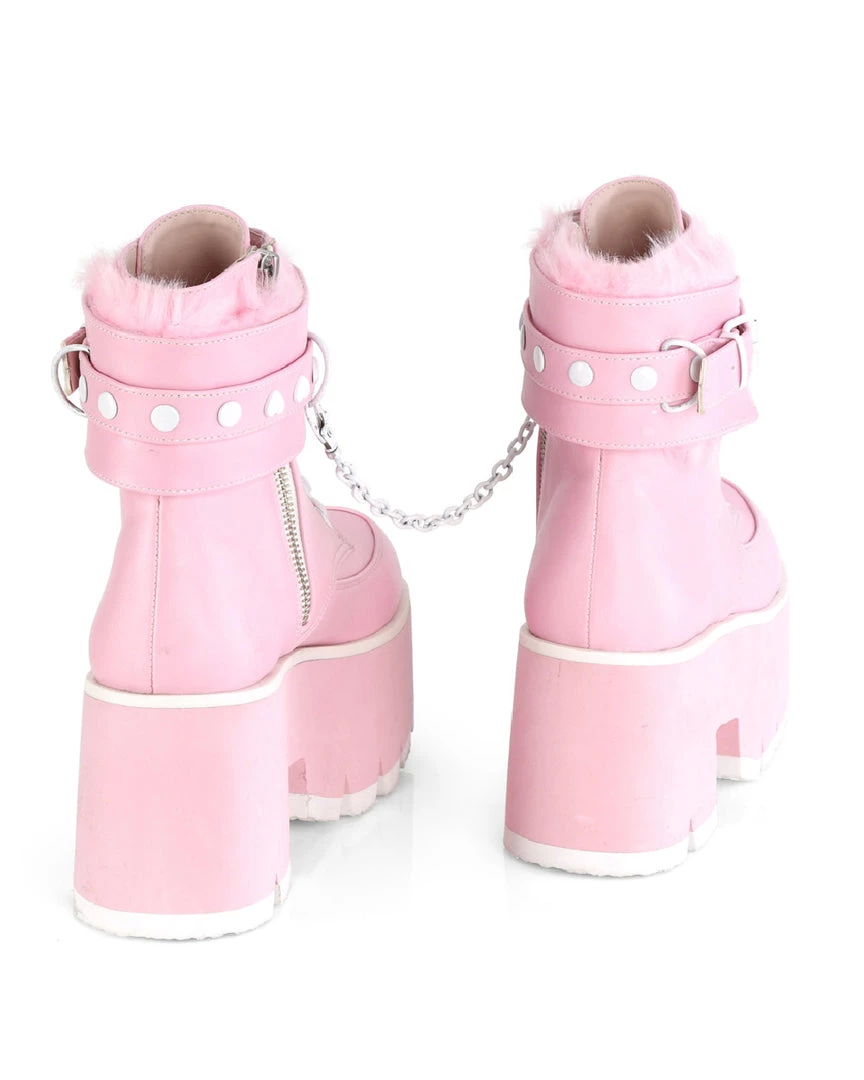 Pleasers Demonia Ashes Baby Pink Fuzzy Cuff Boots Shoes