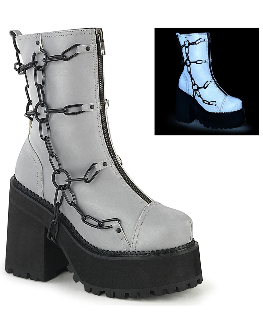 Pleasers Demonia Chain & Reflective Chunky Boots