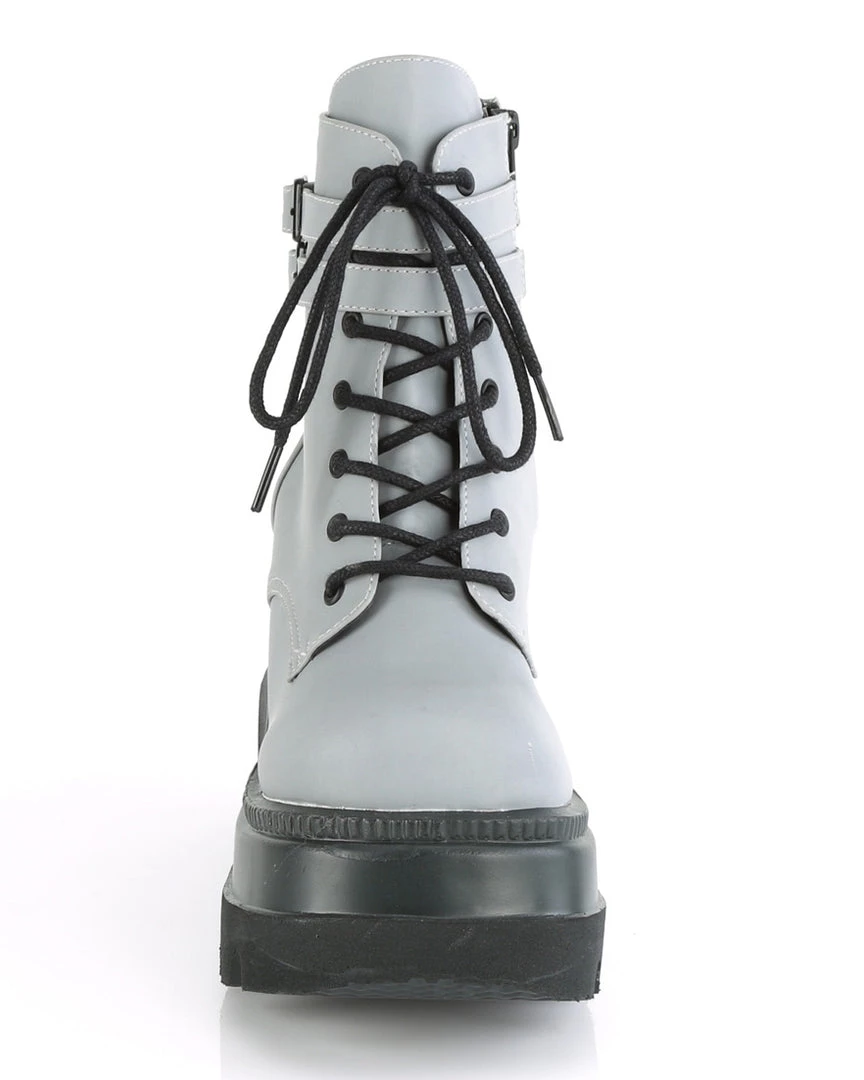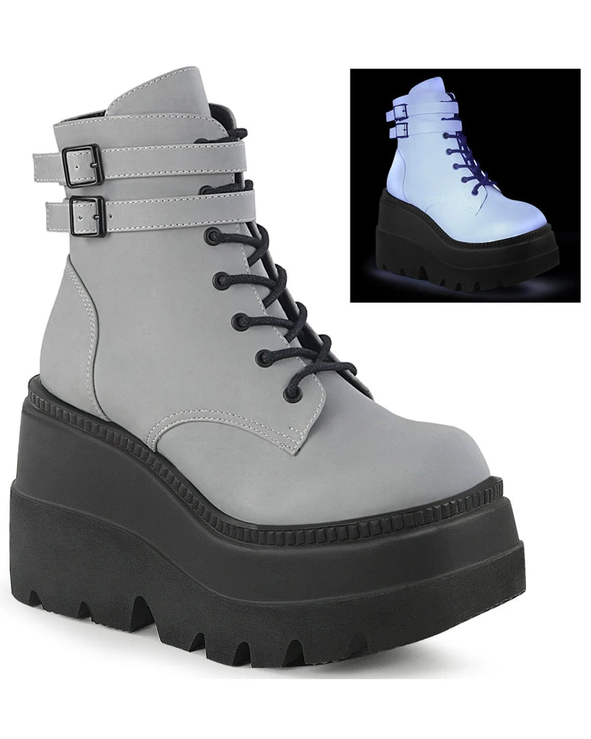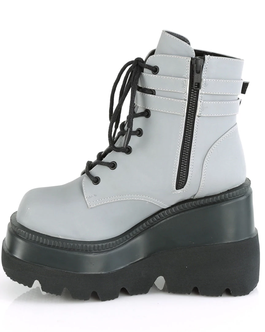 4 1/2″ (114mm) Wedge Platform Lace-Up Front Ankle Boot w/ Double Buckled Ankle Straps, Inside Zip Closure