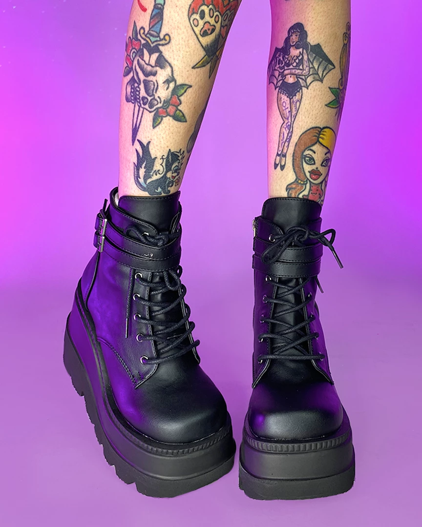 Be the first to review “Pleasers Demonia Matte Black Stacked Platform Boots Shoes” Cancel reply
