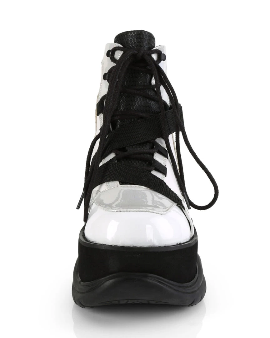 3″ (76mm) Platform Lace-Up Front Ankle Boot Featuring Zig-Zag Strap w/ Quick Release Plastic Buckle
