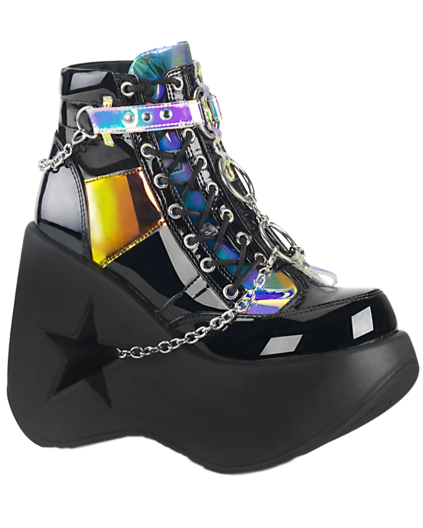 Pleasers Demonia Star Cutout Platform Wedge Side Lace-Up Ankle Boot Vinyl