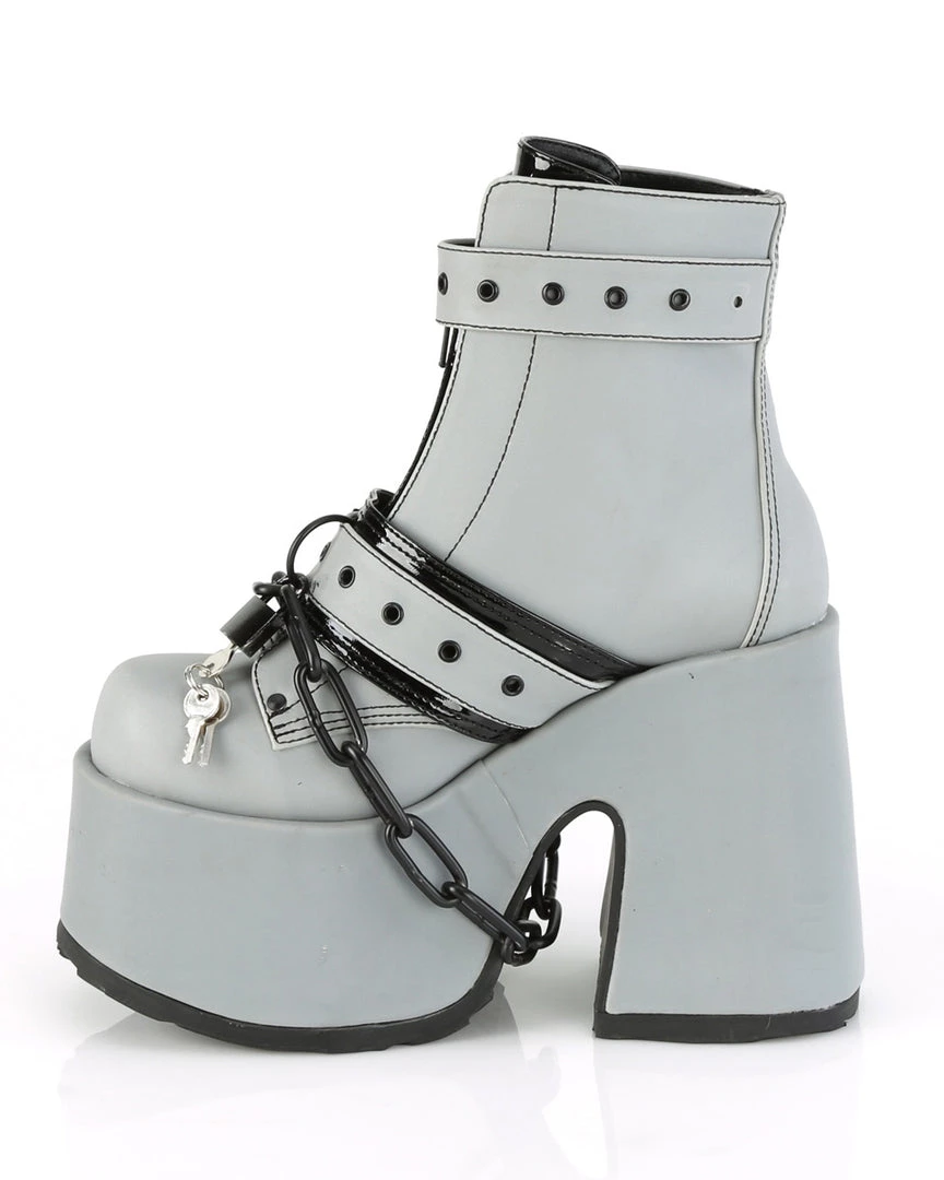 Pleasers Flash Reflective Demonia Lock And Chain Reflective Heel Boots