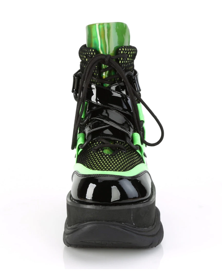Pleasers Mens Demonia Neon Green Platform Lace-Up Criss-Cross Strap Ankle Boot