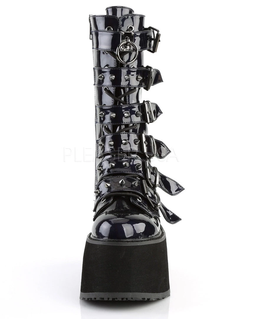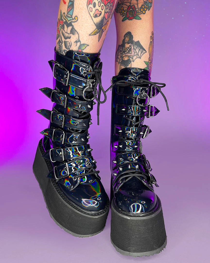 Time to show your feet some love and dance the night away in these amazing buckled studded vegan platform boots. Comes with full side-zip closure for easy on off wear!