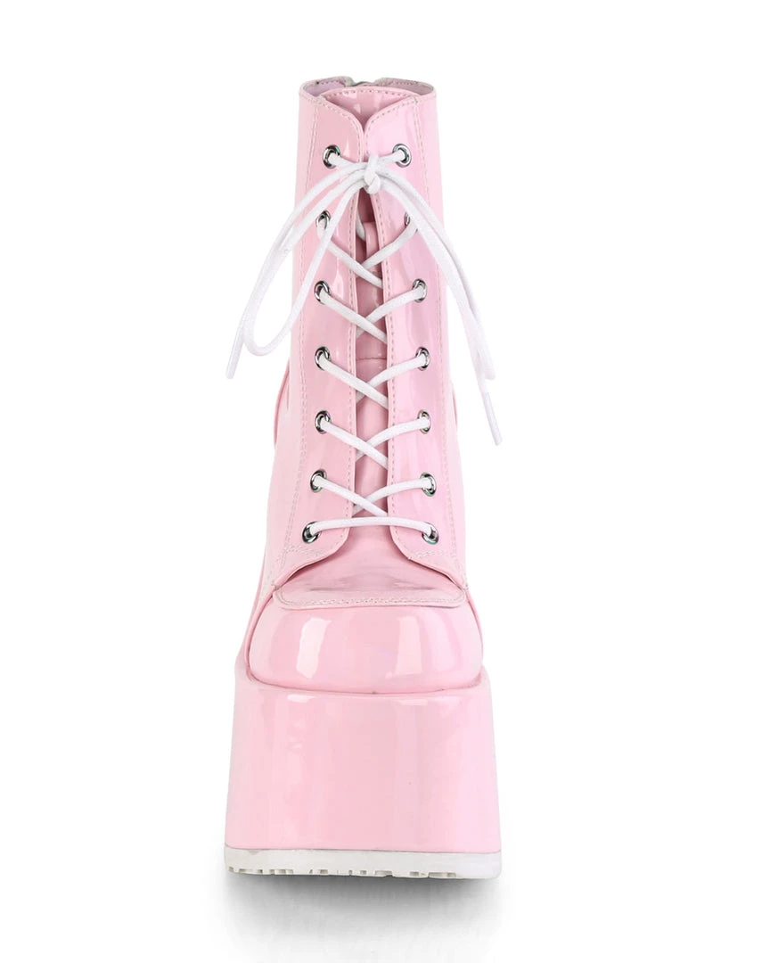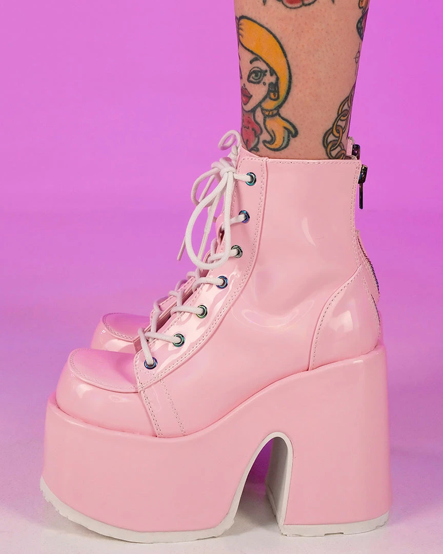 Demonia Pink Holographic Lace-Up Ankle Boot