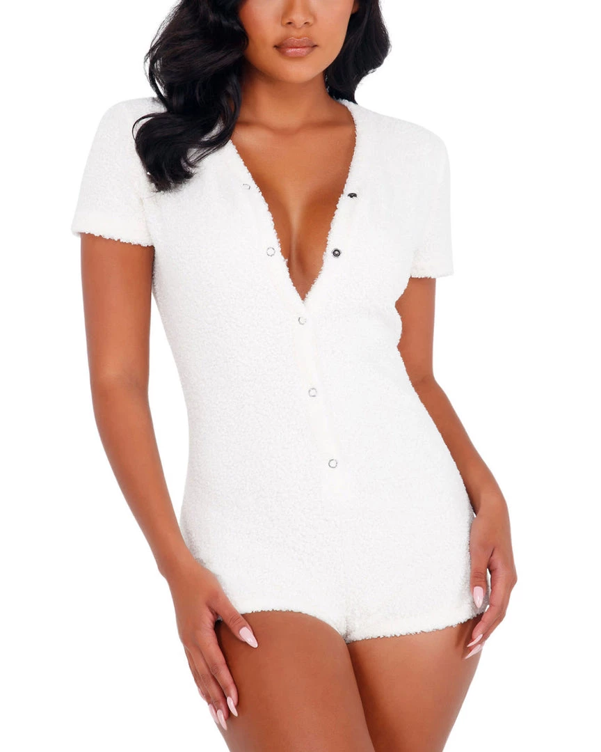 Roma 1pc Cozy Comfy White Loungewear Romper