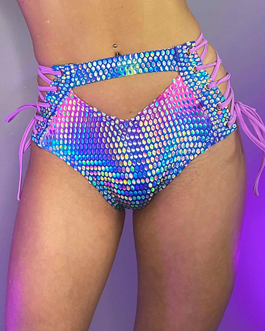 Astro Candy Cutout High Waisted Shorts with Lace-up Detail