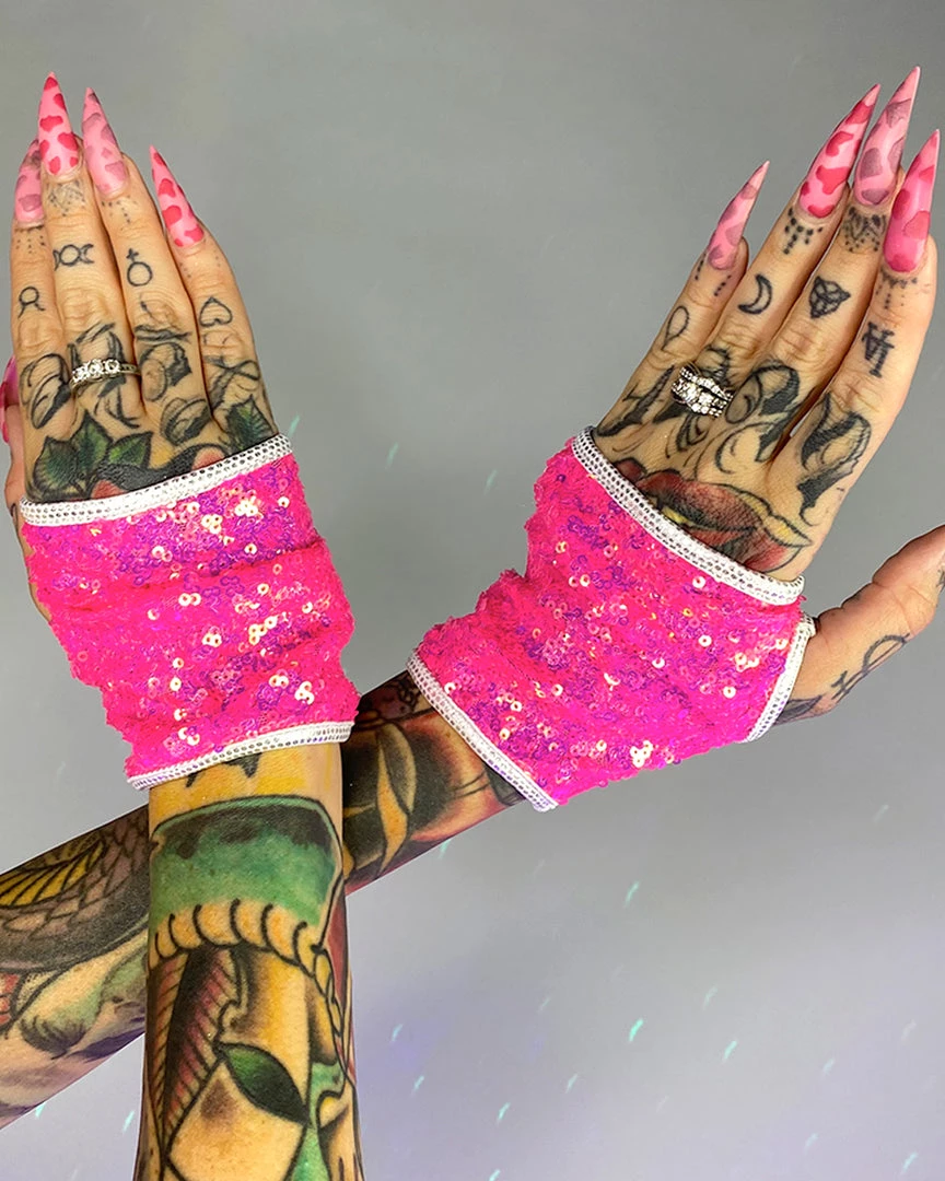 Astro Candy Open Finger Sequin Gloves