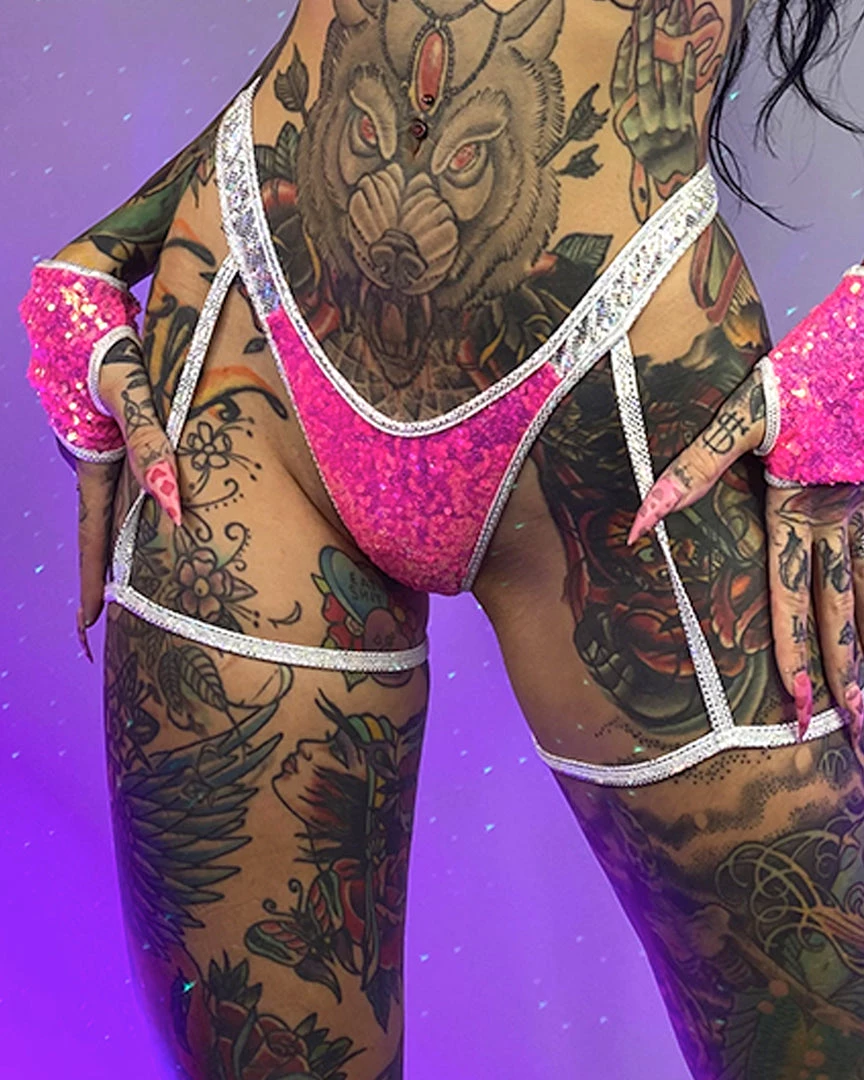 Astro Candy Sequin Shorts with Attached Garters