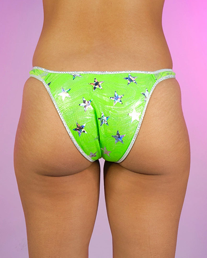 Neon Green/Silver Cosmic Stardust Stars Bottom with Lining
