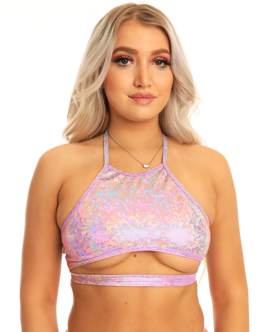 Roma Halter Underboob Cutout Crop Top Rave Tops