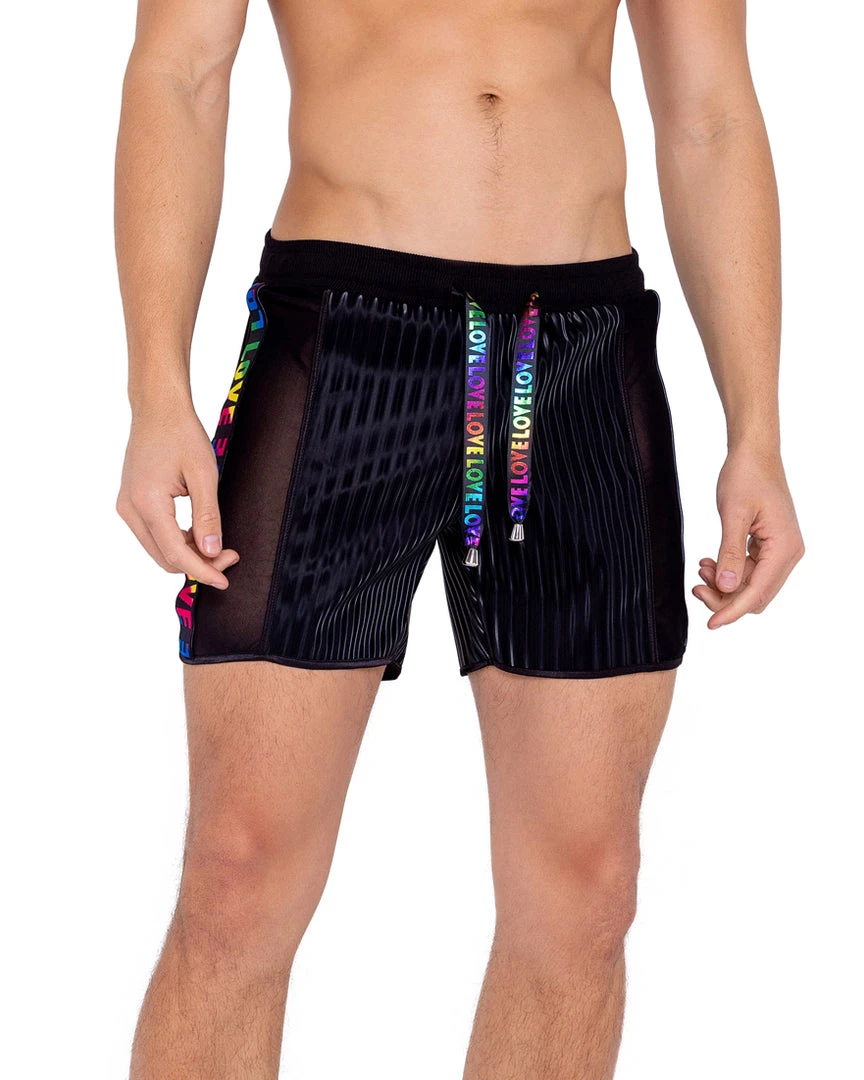 Men’s Pride Two-Tone Biker Shorts with Mesh Panel. Includes LOVE Elastic Logo & Draw String Detail