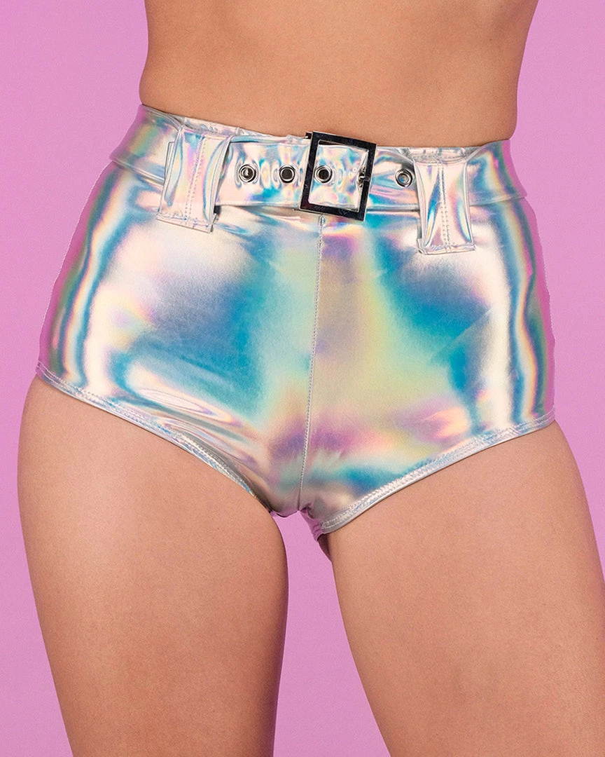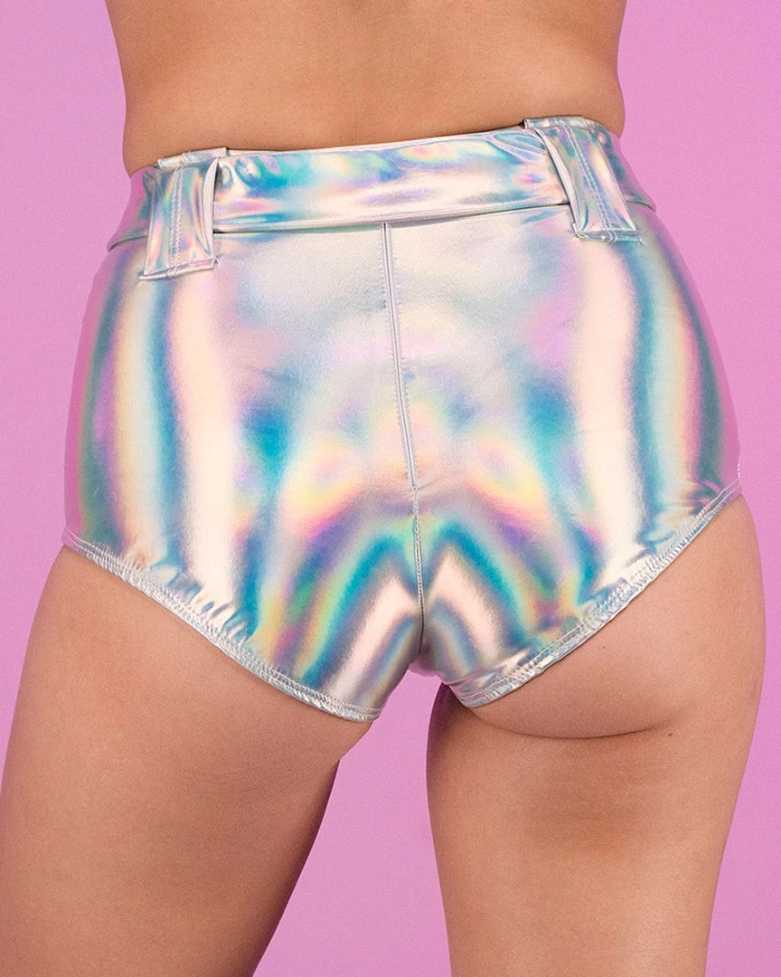 Holographic High-Waisted Shorts with Belt
