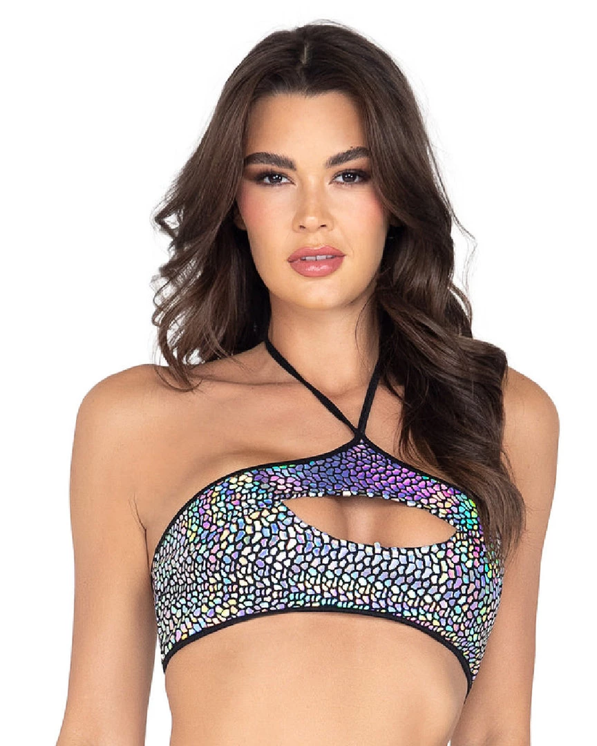 Cutout Cropped Top. Hand wash cold, air dry to preserve the holographic material!