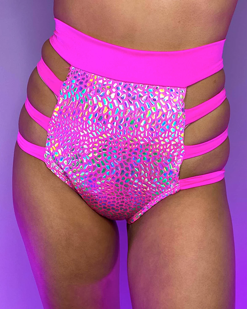 Astro Candy Strappy High Waisted Shorts with Zipper Closure