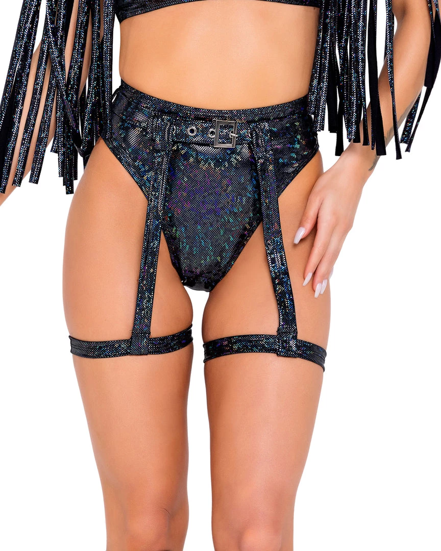 Black Shimmer High-Waisted Shorts & Garter Belt