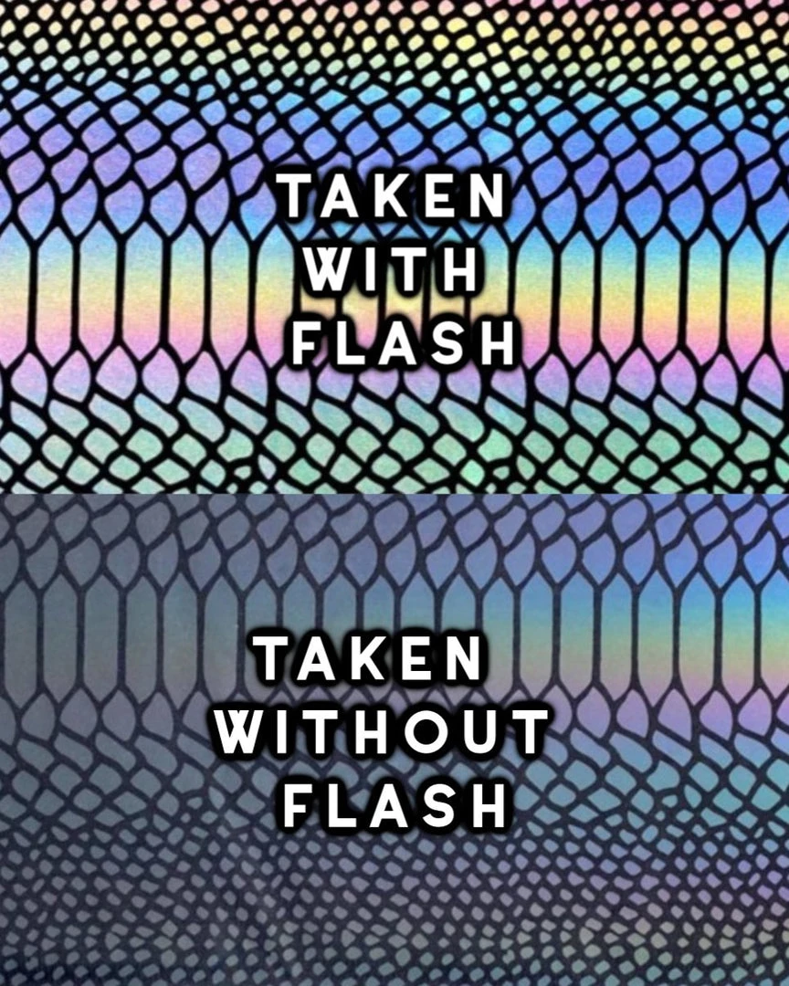 This shit is FLASH REFLECTIVE! Take a pic with yr flash on to reveal the crazy reflective rainbow.
