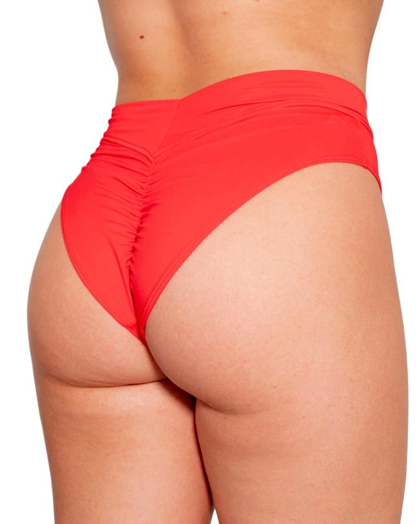 Shark Red Matte Solid Scrunch Back Booty Shorts Womens