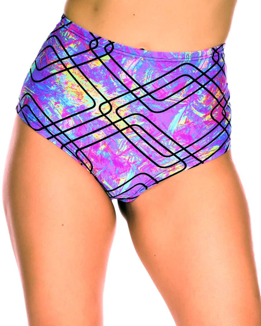 Have some fun with this flirty high-waist booty shorts! Zipper closure in the back.