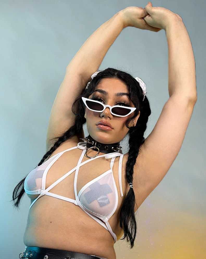 Pair with your fave pasties to complete the look! Halter ties around the neck and back for a fully adjustable fit! One size fits most. Does not include pasties.