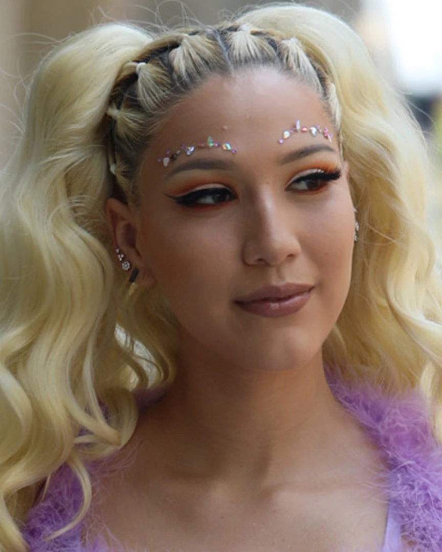 Pre-arranged face jewels with adhesive. Super easy application! Just peel and stick onto desired area. Durable and holds all night while you dance the night away! Apply onto dry skin without makeup.